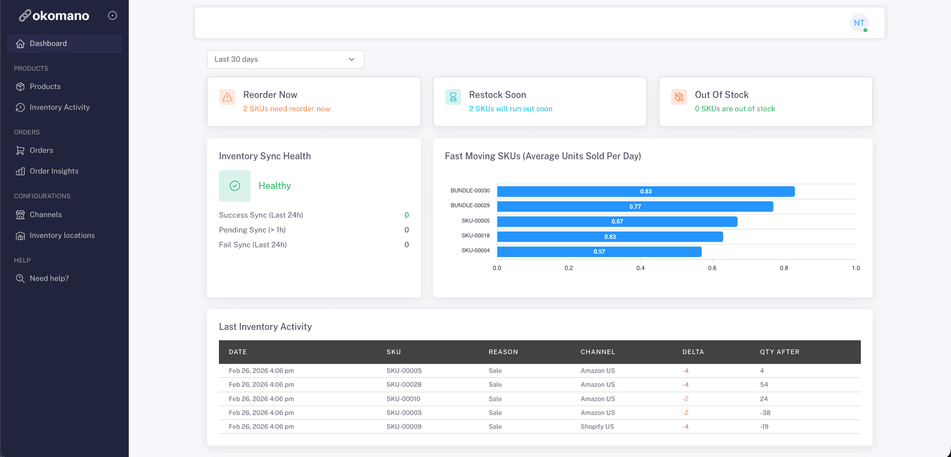 Okomano syncs inventory in real time and centralizes orders across channels, giving you a clear view of stock and sales as they happen.